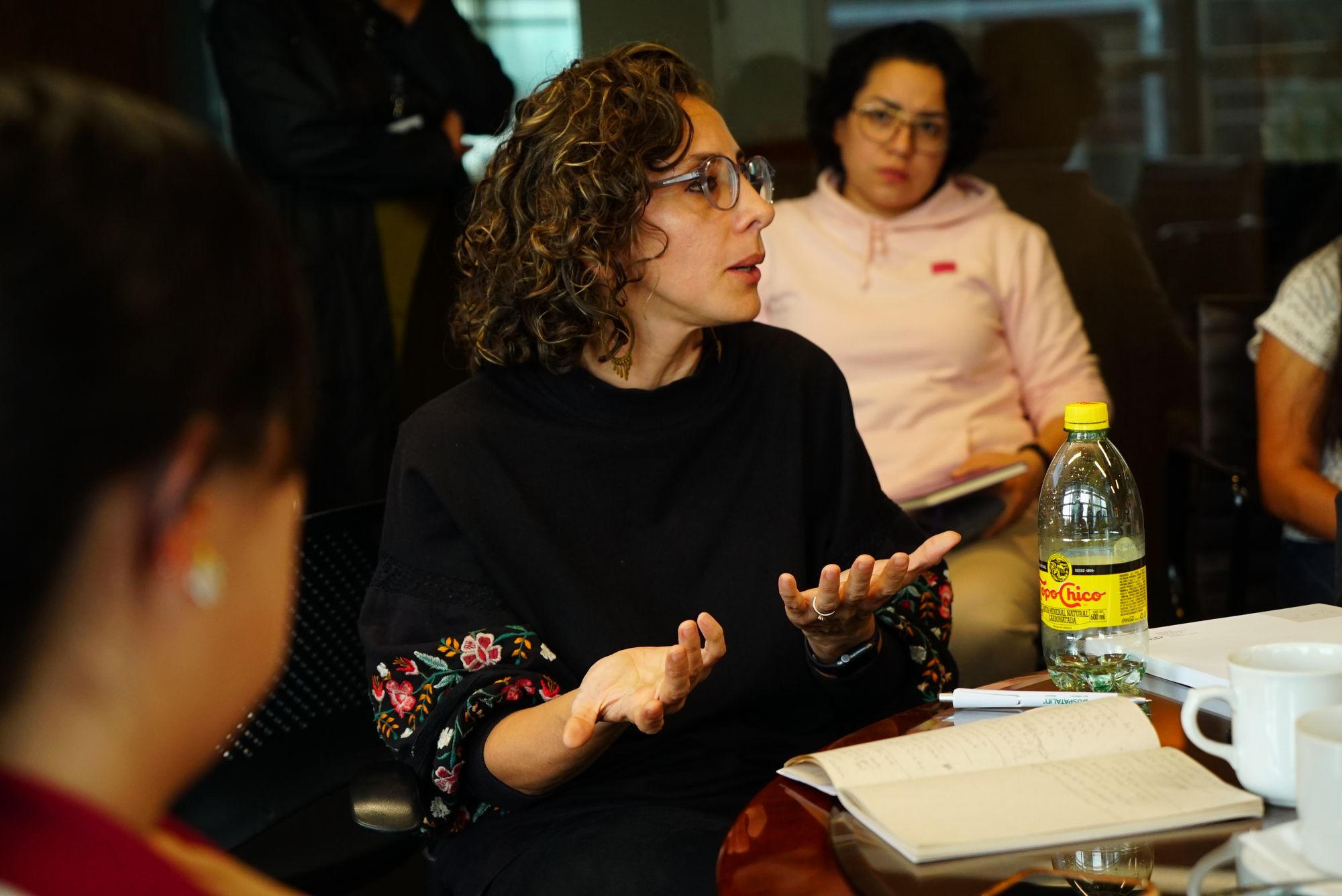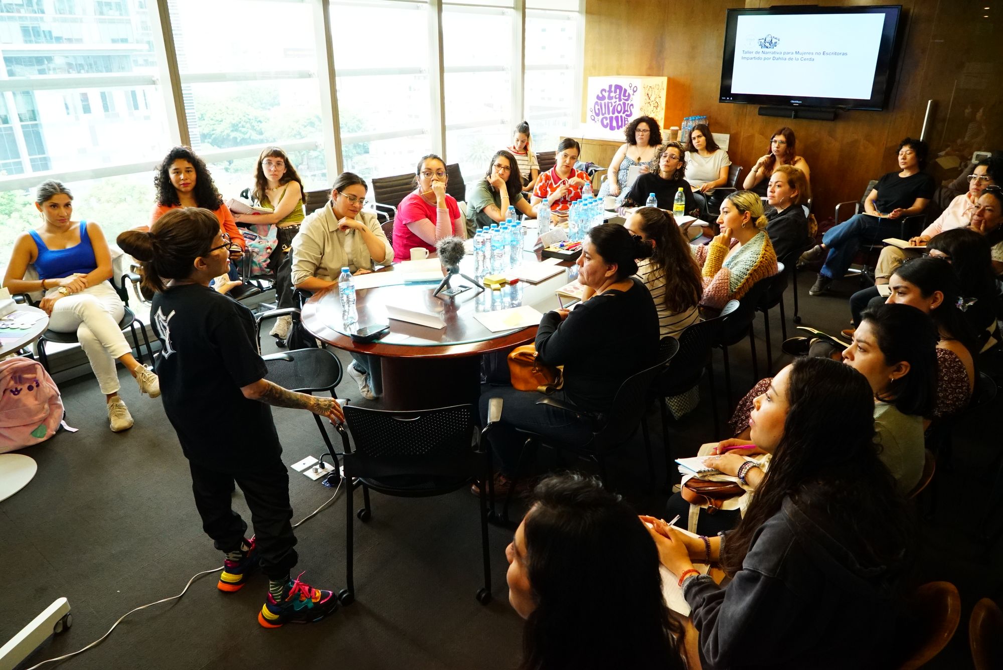 El lugar: el noveno piso de un edificio en Reforma. Este semillero de estrategias en materia de asuntos públicos y de cabildeo, atestiguó por más de dos horas el revoloteo creativo de personajes, vivencias magnificadas, recursos ficcionales, estructuras narrativas y demás elementos que pudiesen aportar al oficio de todas —terapéutico y autodidacta en la mayoría de los casos, profesional en algunos otros, pero siempre un recurso orientado a (re)encontrarnos y (re)conciliarnos con nuestro entorno y formas de vincularnos—.