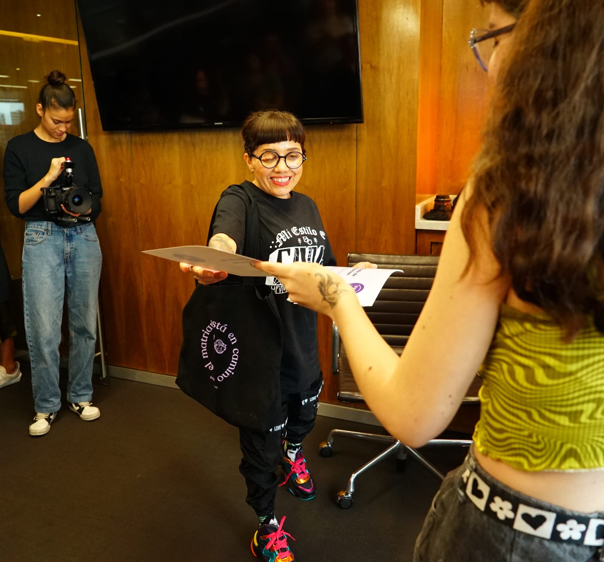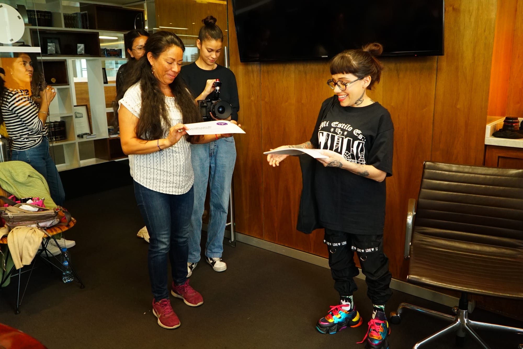 Dahlia de la Cerda entregando constancias de participación del Taller de narrativa para mujeres no escritoras en GEP. Fotos por Txstlt.foto 2023.