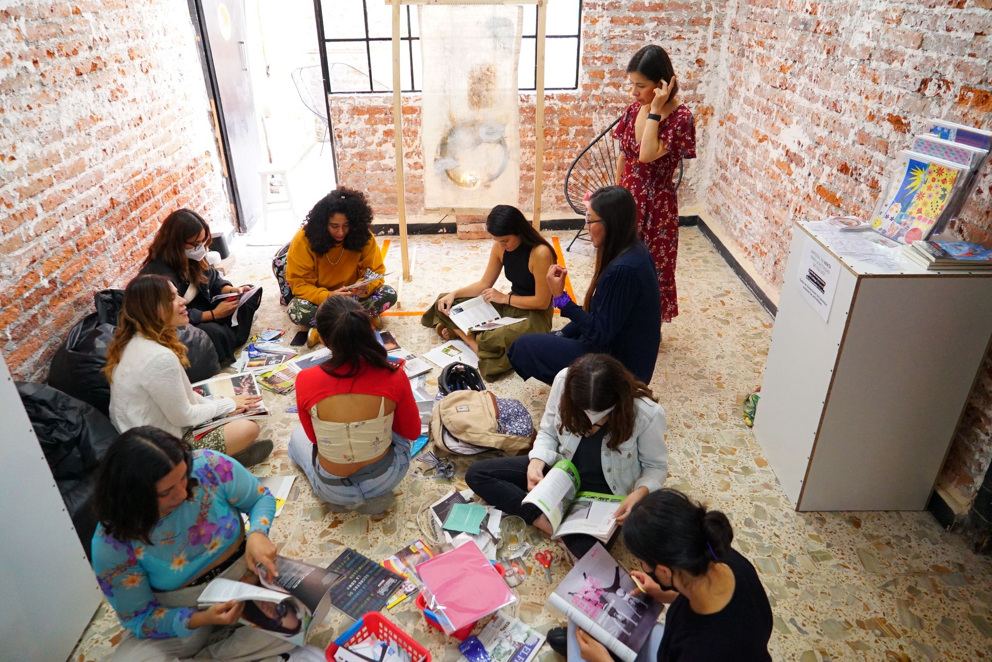Sesión especial de collage feminista realizado por Stay Curious Club y Club Collage en Avant.Dev. Fotos de Tax Satélite, CDMX 2022.