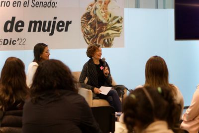 Carmina Salas en línea desde Santiago de Chile en el taller "El Collage como medio de liberación femenina" en Sesión Especial de Stay Curious Club y Club Collage en Avant.Dev. Fotos de Tax Satélite, CDMX 2022.