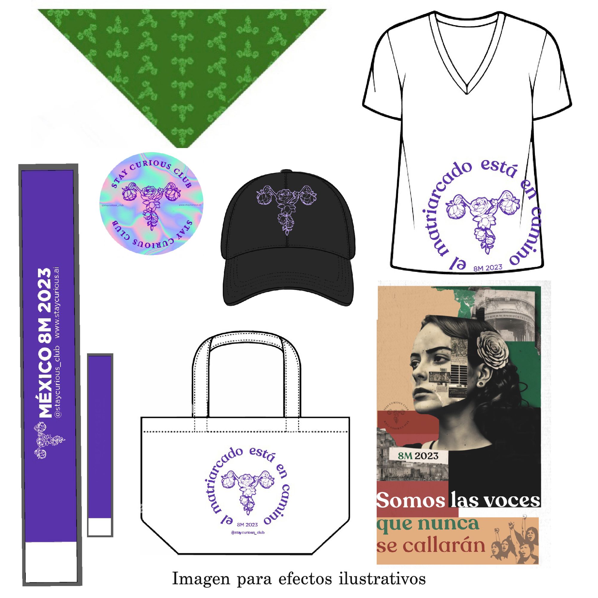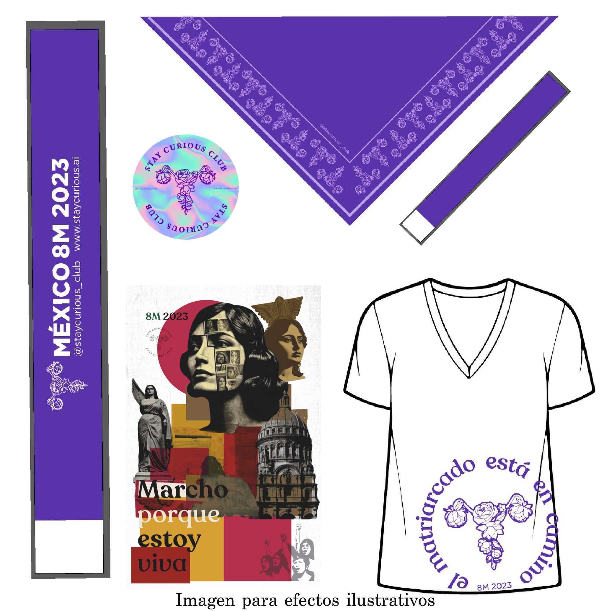 Los Kits conmemorativos de Stay Curious Club para el 8M2023 incluyen una selección de artículos de calidad con intervenciones de diseños realizados por Alma Vilchis y Raquel Selvas inspiradas por el movimiento feminista y la marcha del 8M.