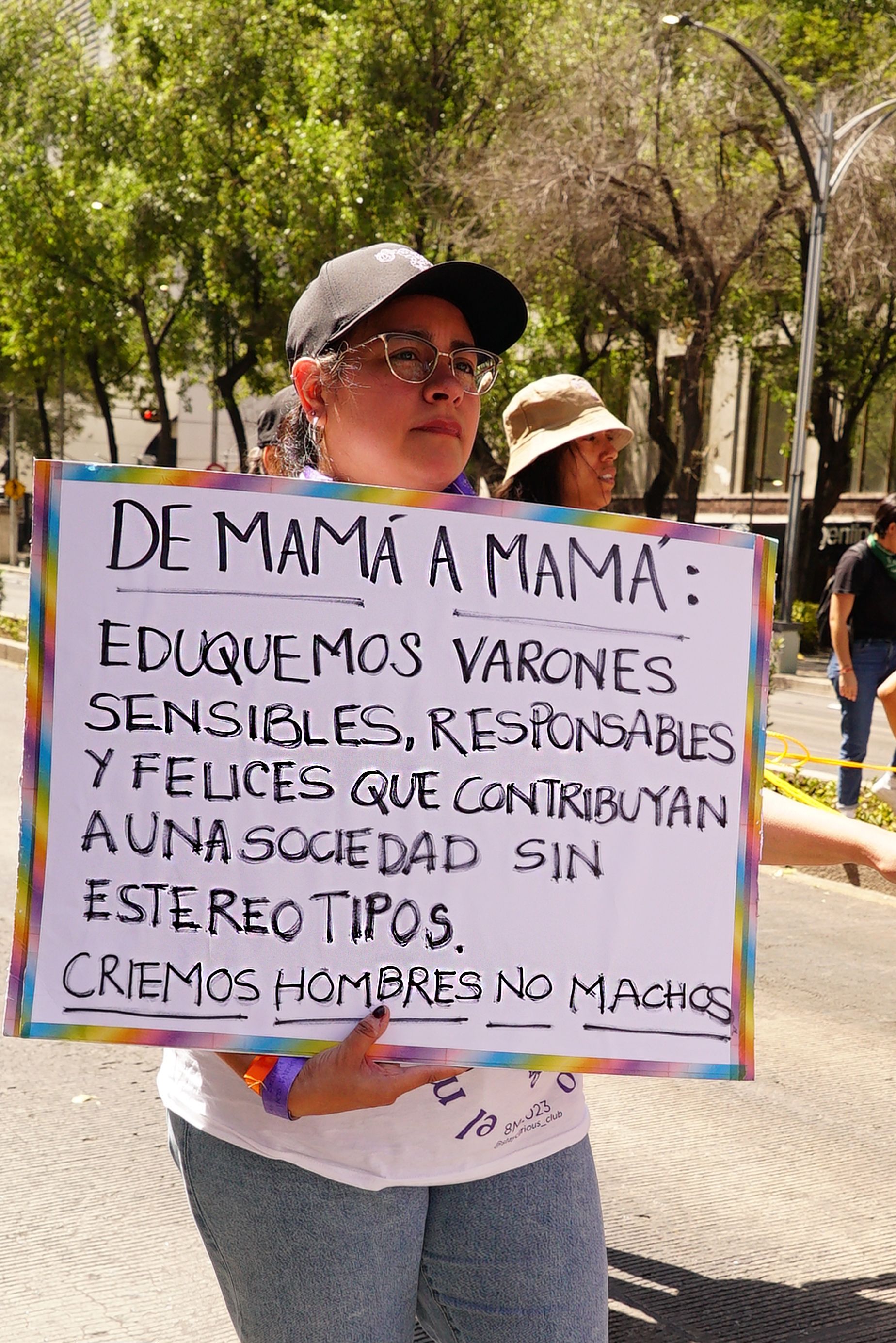 Durante el trayecto el calor alcanzó los 28° centígrados y avanzamos poco a poco con rumbo al zócalo de la Ciudad de México. En el camino nos encontramos con múltiples contingentes. Me sorprendió la pluralidad, pero al mismo tiempo la afinidad. Las Feministas antiespecistas clamaban por el alto a la explotación de todas las mujeres y hembras. Al grito de “hermana, hazte vegana” nos invitaban a sumarnos a su lucha. Las estudiantes de medicina y odontología llamaban a reconocer que son doctoras, no señoritas. Educadoras gritaban “marchar, también es educar”. Ante esto, es bien sabido que a muchas mujeres se les desincentiva, entorpece y hasta se les obliga mediante diferentes mecanismos a no asistir a la marcha.