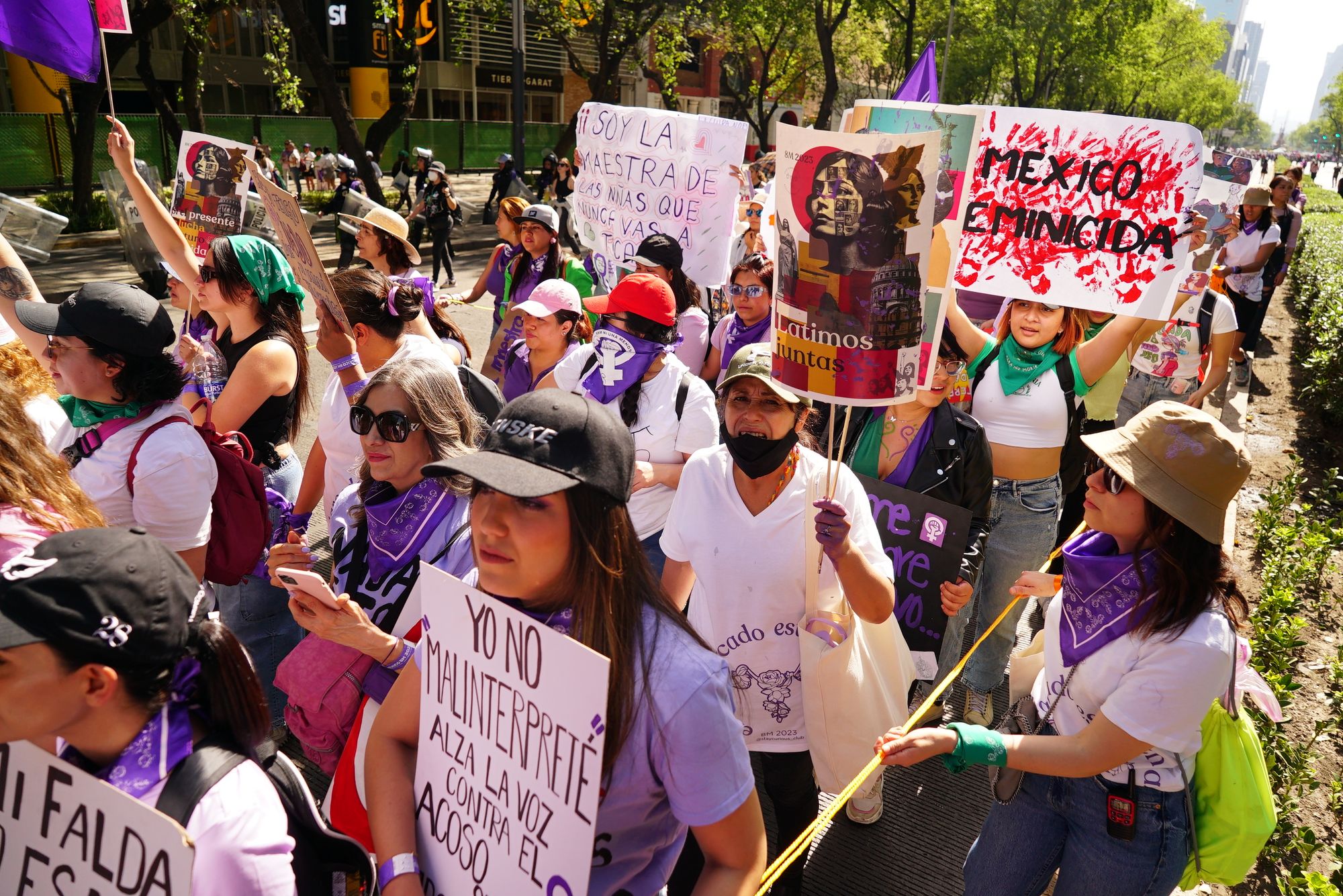 A la Marcha del 2023 acudieron mujeres de todas las edades, algunas iban acompañadas de amigas, mamás, hermanas e hijas pequeñas. Resaltaban las agrupaciones de universidades, bachilleratos, organizaciones civiles y colectivos de buscadoras, entre muchas otras.